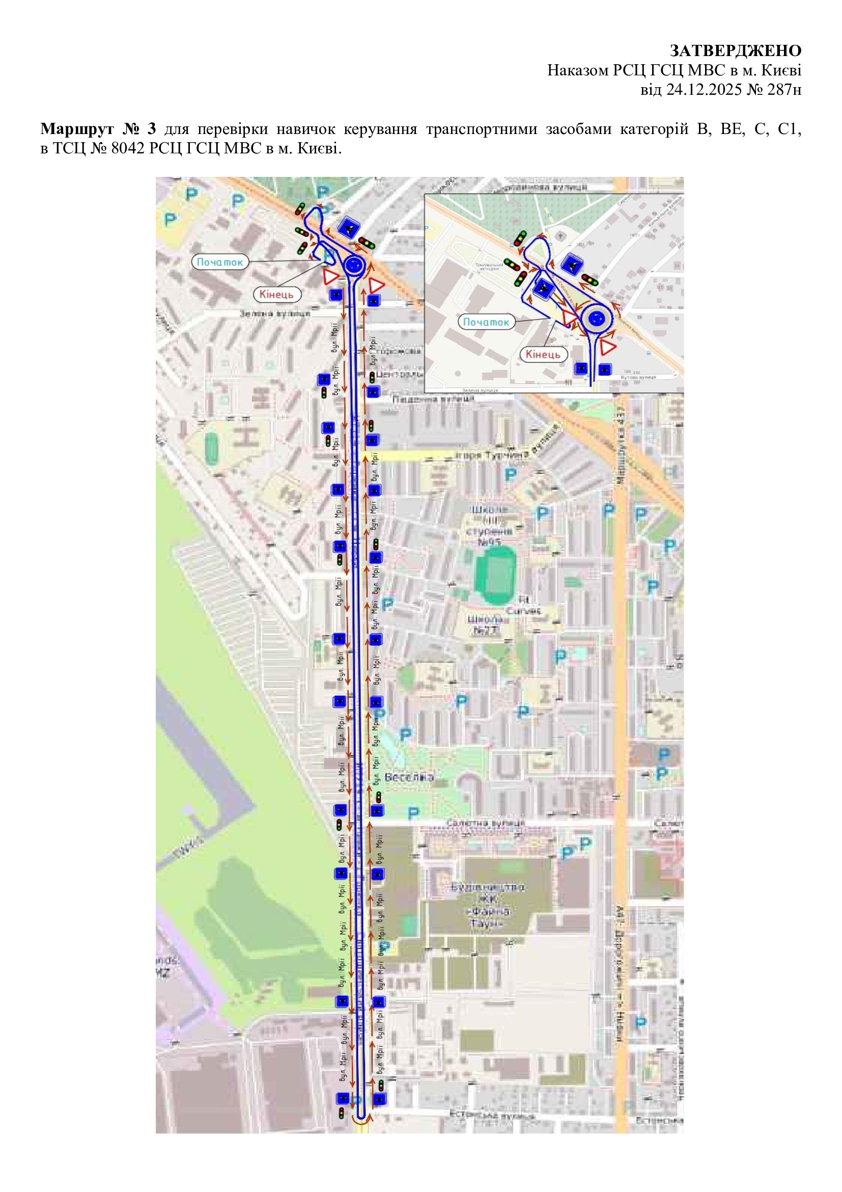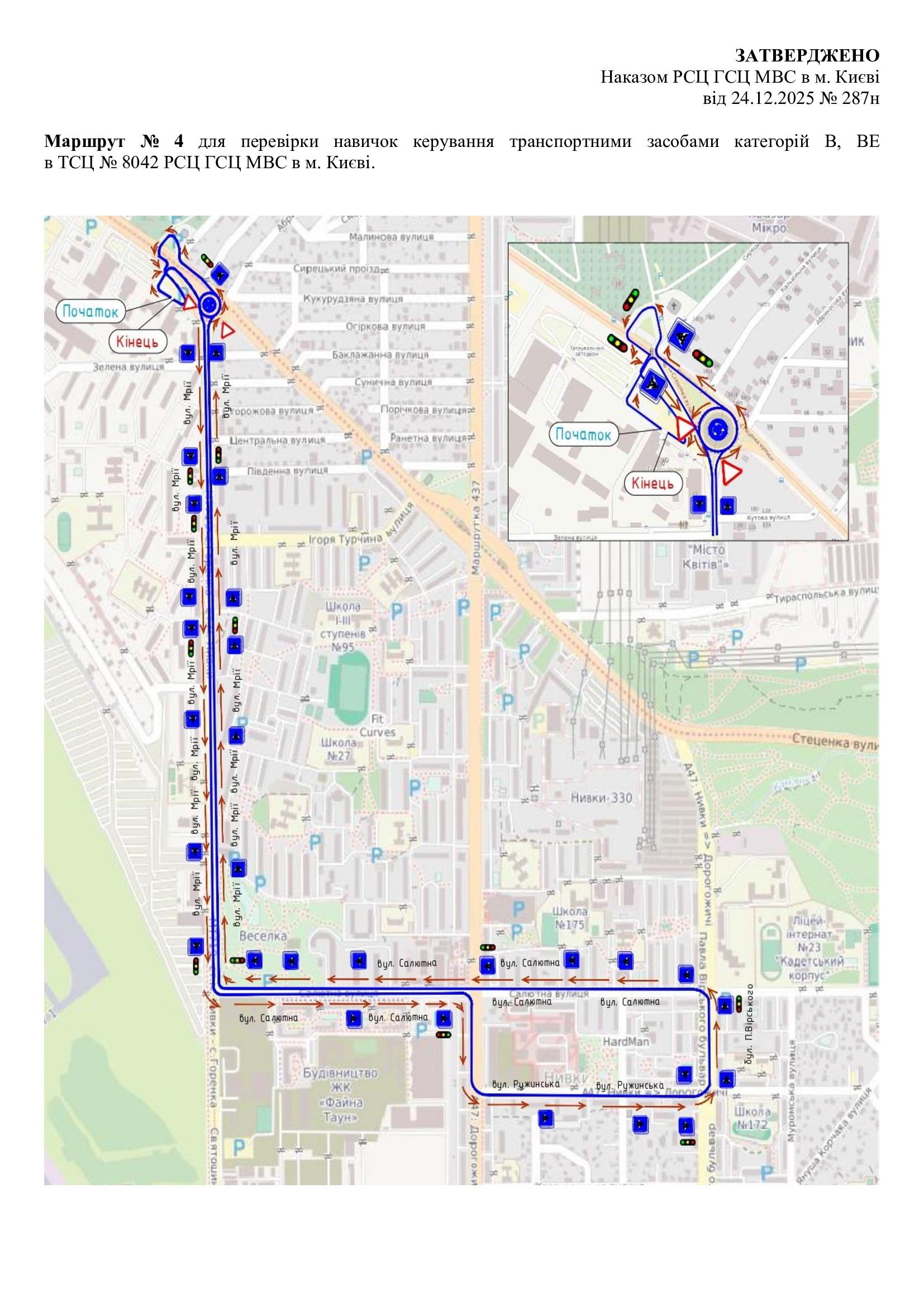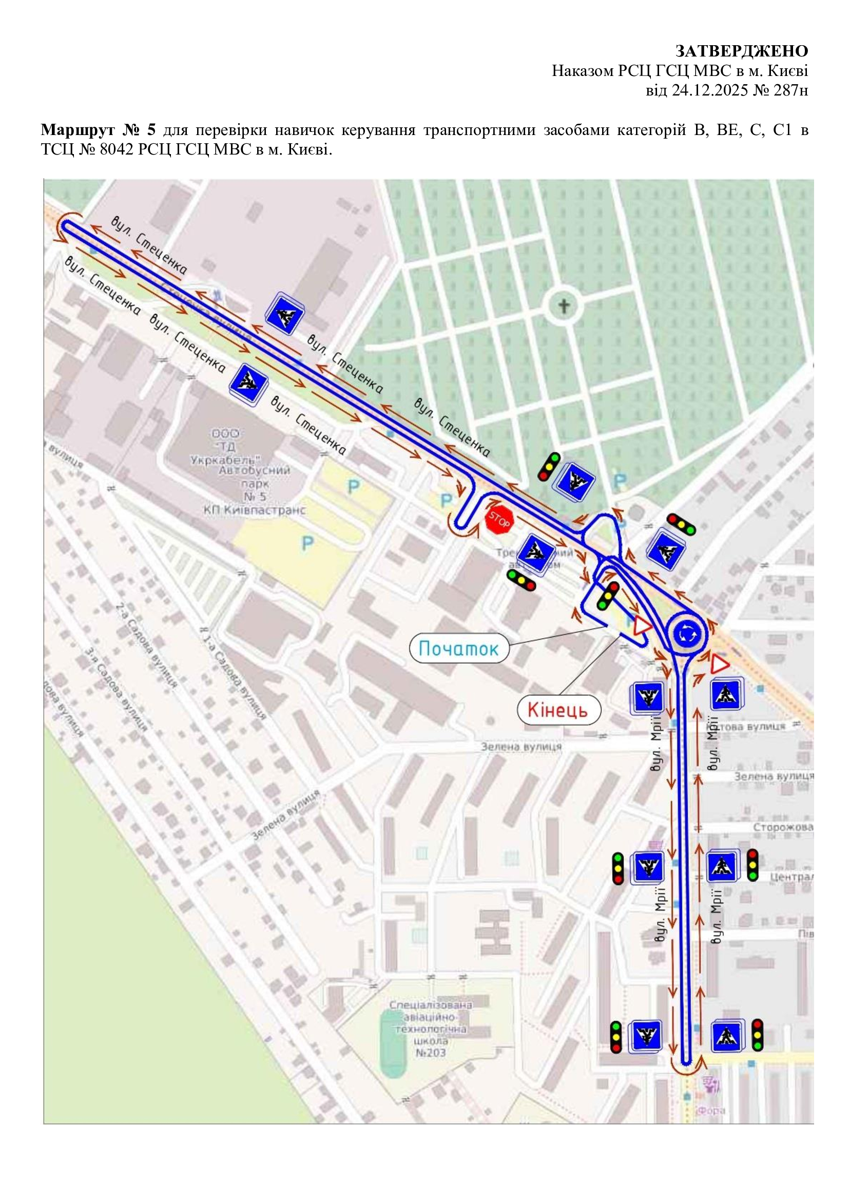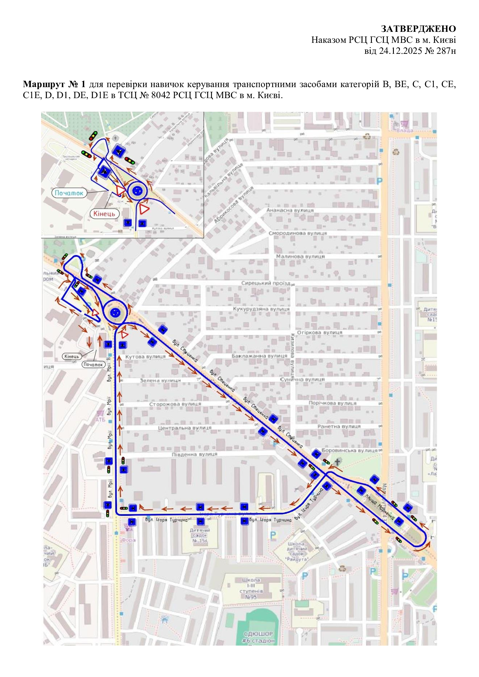 Маршрути для перевірки навичок керування транспортними засобами. м. Київ, вул. Мрії, 19 (ТСЦ МВС № 8042)