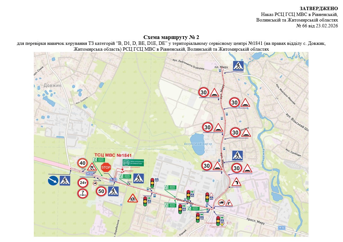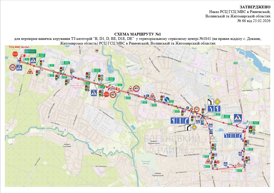 Маршрути для перевірки навичок керування транспортними засобами